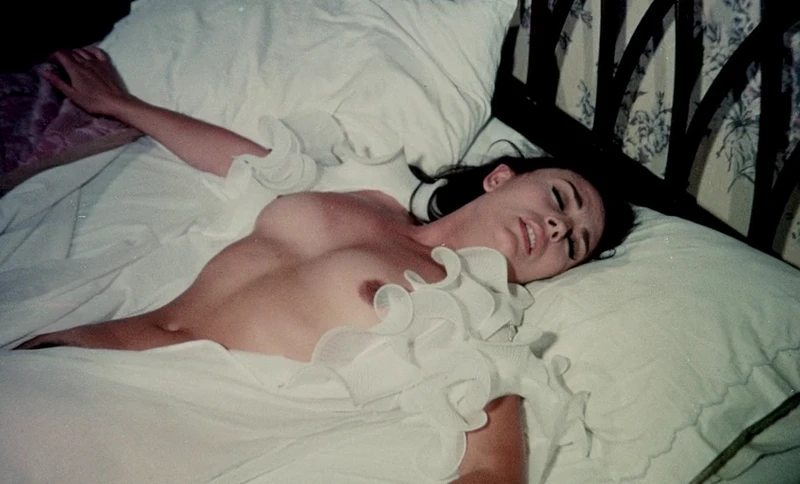 Opening credits are just flashing between still images of naked scenes from later in the movie. I think we're in for some unabashedly pornographic garbage. Not that you should expect too much from something with the title "Nightmares Come at Night." I've never seen a Jesús Franco film, but I guess anybody who releases 7 erotic films per year isn't shooting for Cannes.