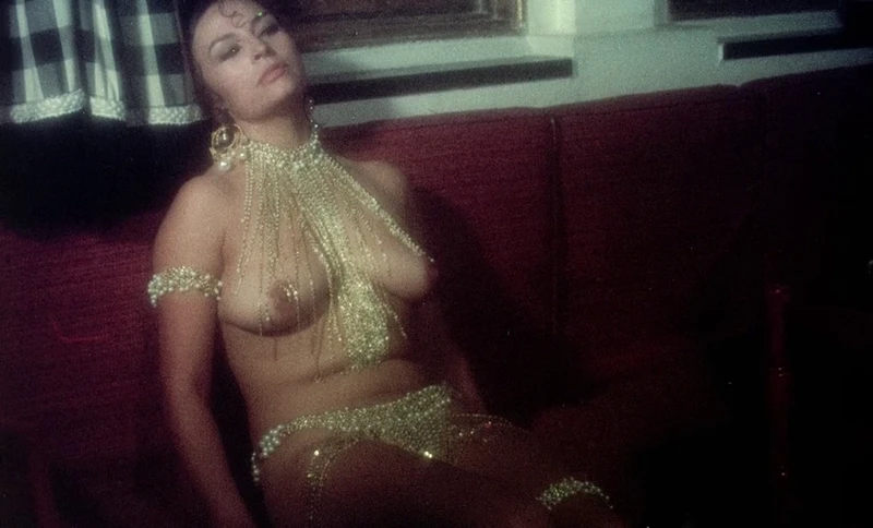 A one-note sitar song plays in the background for far, far too long while the two girls just lay in bed naked and the camera zooms and zooms and zooms and zooms. Then we get to suffer through an even longer naked dance party to some Caribbean music. There is dust and a smudge mark on the lens during this scene.