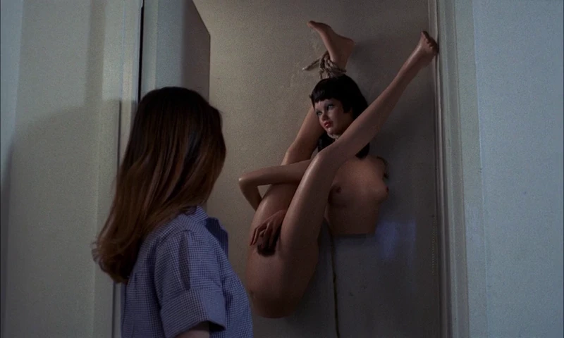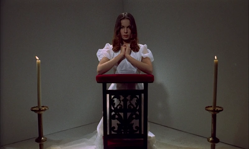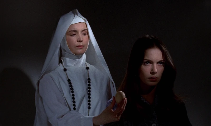 Detectives and judges and priests come by to get her story about the death of her roommate, and she inevitably gets lost in memories/day-dreams/visions. These flashbacks (?) are nearly always sexual, frequently involving lesbianism.