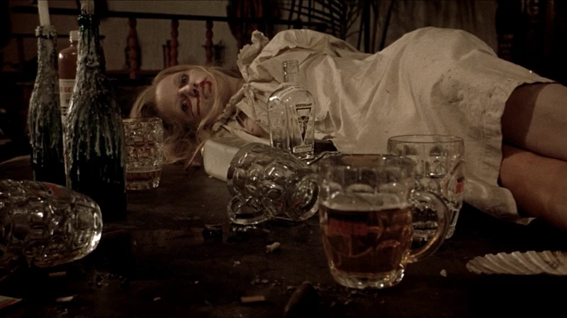 The scene changes to a tavern, where finally a story might start, but instead the pirates tear the clothes off of a barmaid and the porn continues. The first word is finally spoken nearly 20 minutes in, and we get confirmation that this film is, in fact, a "talkie." And suddenly: the captain hallucinates dead bodies everywhere! The dead bodies of those women from the first scene. We might just be in for a story after all! All of the blood looks like Clamato.
